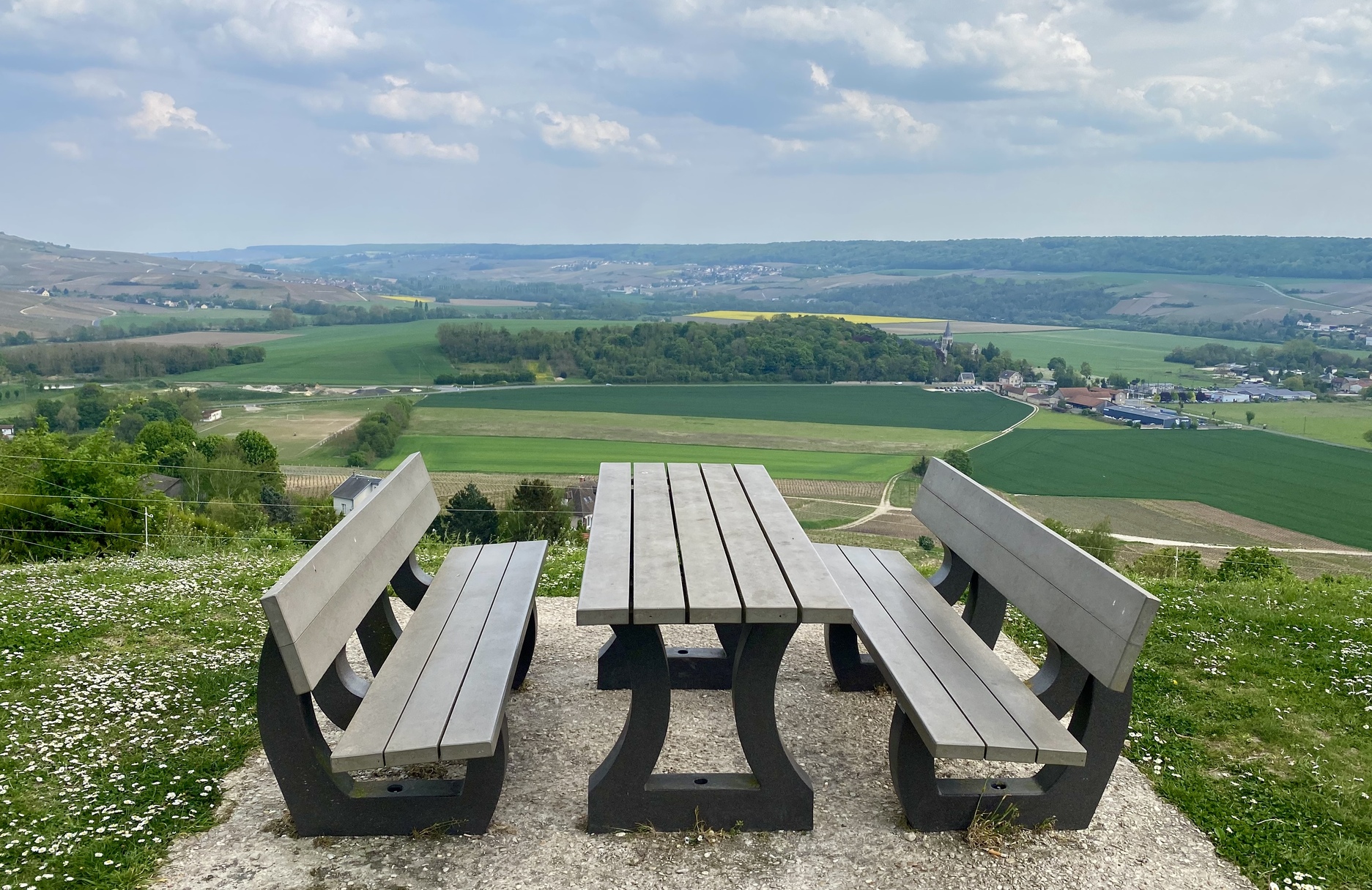 This panorama allows a direct reading of the Champenois territorial structure: the fluvial valley floor as a historic axis of communication, the man-shaped vineyard slopes, and the limestone ridges that define the geological configuration of the region.